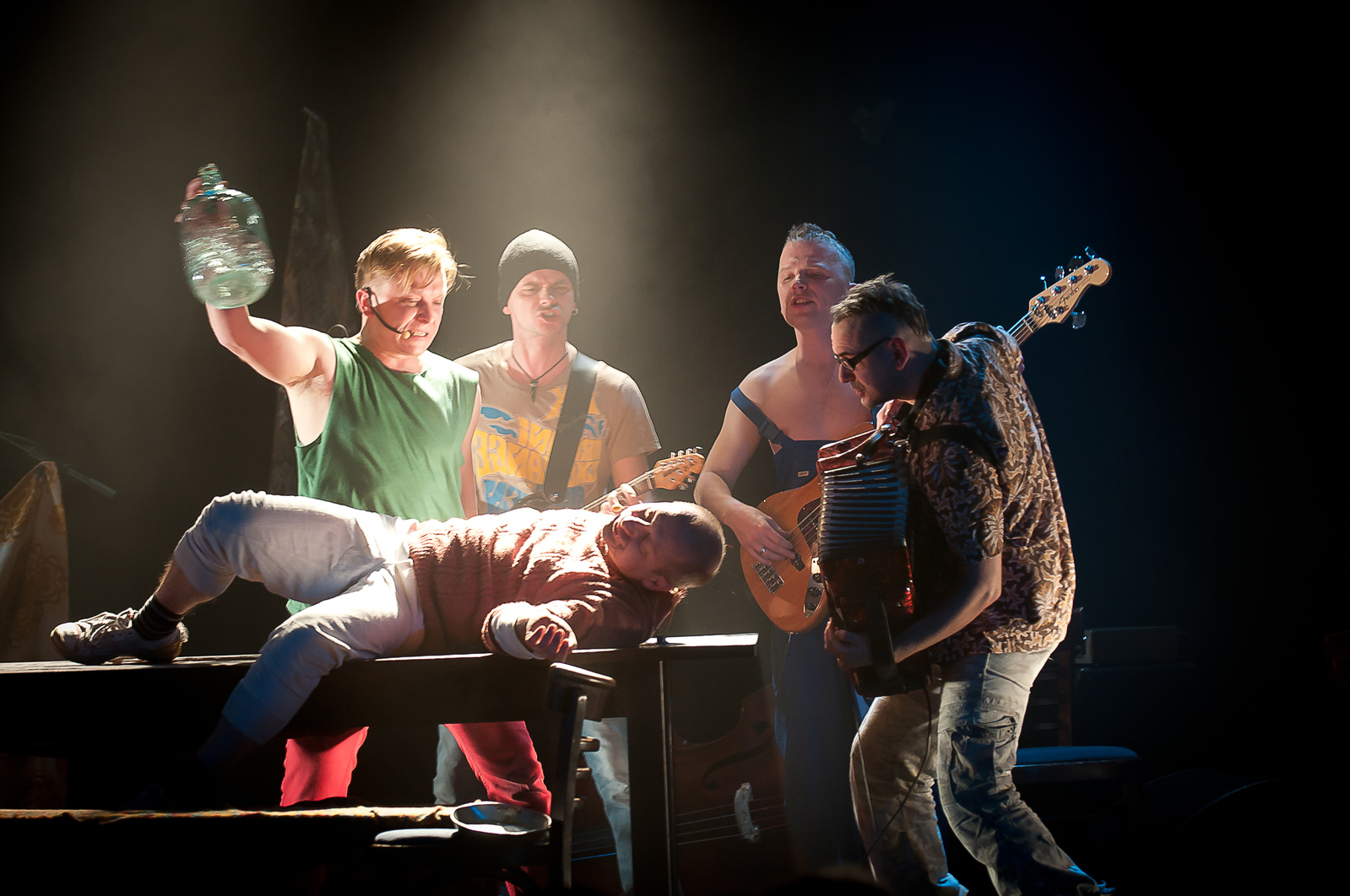 | Opis | Znakomicie zrealizowany muzyczny spektakl, zbudowany na bazie 18 piosenek z repertuaru zespołu "Leningrad" z Sankt Petersburga. Przedstawienie wciąga od początku niezwykle wiarygodnie i sugestywnie tworzonym nastrojem permanentnej balangi, doskonałą grą aktorów Mariusza Kiljana i Tomasza Marsa oraz porywa niesamowitą energią granej na żywo, ostrej muzyki, w wykonaniu instrumentalistów, którzy również uczestniczą w działaniach scenicznych. Od ponad trzech lat na kameralnej scenie Teatru Piosenki spektakl cieszy się niesłabnącą popularnością wśród publiczności, która po każdym przedstawieniu domaga się bisów. koncepcja i reżyseria spektaklu: Łukasz Czuj aranżacja i kierownictwo muzyczne: Krzysztof Łochowicz tłumaczenie tekstów: Michał Chludziński projekty kostiumów i przestrzeni: Elżbieta Rokita Materiały: Impart Wrocław |